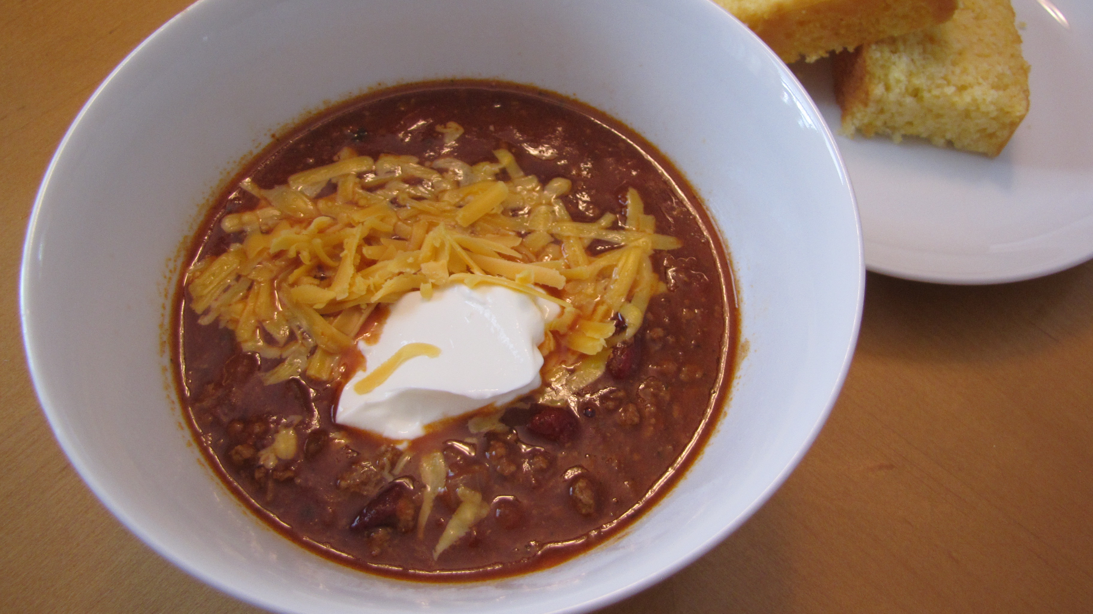 It’s been downright cold since this new year began. To warm our selves up a little bit, I decided that Sunday was the perfect time to make a batch of chili. On Saturday we headed up north with our friends David and Marc to do a little shopping in the Beachwood area. We stopped at the mall where David found out that, “sugar is not just sugar.” We also hit the Eton Collection of shops which feature a Trader Joe’s, Sur La Table, Orvis (which may soon become the new official outfitter of Michael Derr) and Penzeys Spices. The spice shop is where I found Chili 3000, The Now Chili. It’s an interesting combination of ancho chili powder, garlic, cumin, onion, cilantro, cayenne pepper, lemon peel, mexican oregano, black pepper, citric acid, natural smoke flavoring and jalepeno pepper. It’s hailed as the chili of today with a bright modern flavor. Near the spices was a recipe for chili that, of course, included this particular spice.
