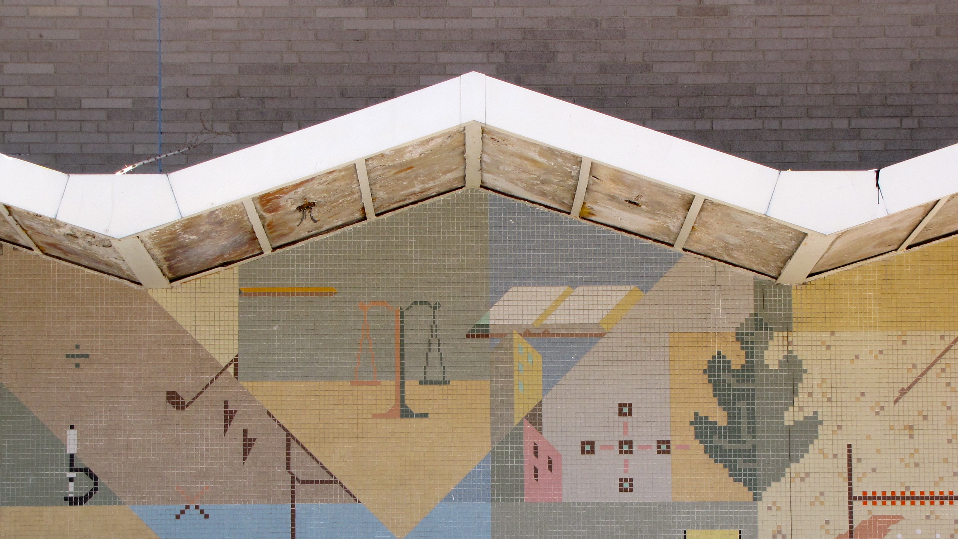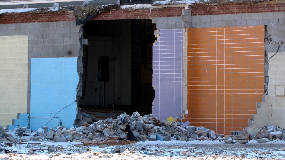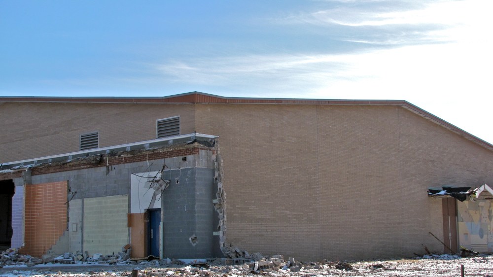I’ve been intrigued by the demolition of one of the elementary schools in Tallmadge. It’s right off the Tallmadge Circle. As a kid, I remember seeing the tiled mural on the front as my dad took my sister and I to visit our grandparents who lived in an apartment complex right next to the school. I was always drawn to the mural. Well it doesn’t seem like that mural and school have much more time. Here are a few more photos of my visit to the demolition site. I like how the one photograph shows all the different blocks of color from several rooms of the school that are now exposed. I wanted to get a closer look and better shot of this wall, but I didn’t suppose they wanted some guy just walking around the site. And me without my steel-toed boots.