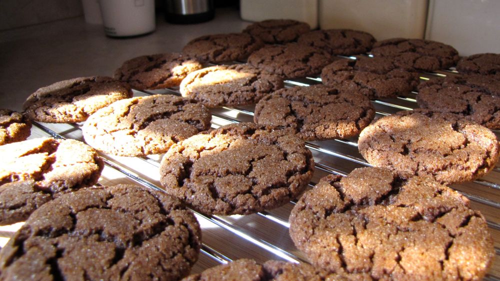A cookie, and a heck of a lot easier to make than a homemade pop-tart. Each issue of Everyday Food magazine ends with a cookie recipe. This month features the Mexican Hot-Chocolate Cookie. A simple chocolate batter that’s formed into balls then rolled in a bowl of sugar, cinnamon, and a pinch of chili powder. As Greg put it, “the chili powder really rounds out the complex flavors.” Clearly, he’s watched a lot of Food Network with me over the last nine years.