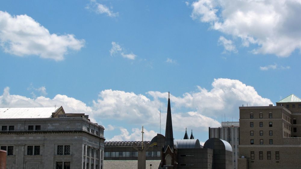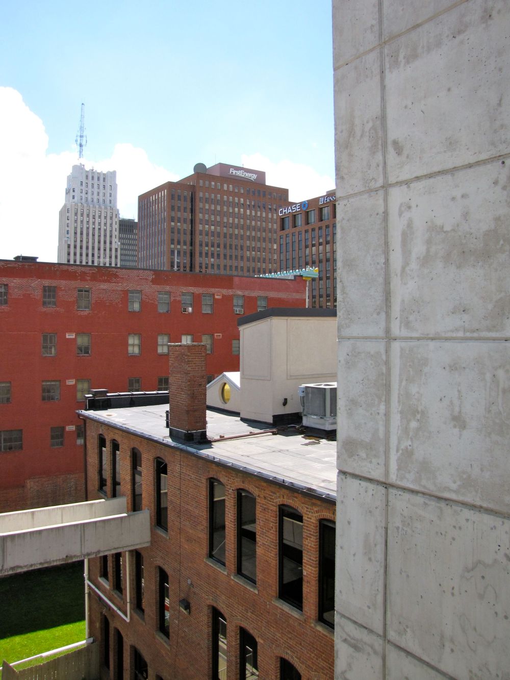 I spent my lunch hour on Wednesday walking around the outside of the building with my camera. That’s where all of these photos are from. Either the grounds around the Library or from the top floor of the parking deck. Downtown Akron was gorgeous this day.