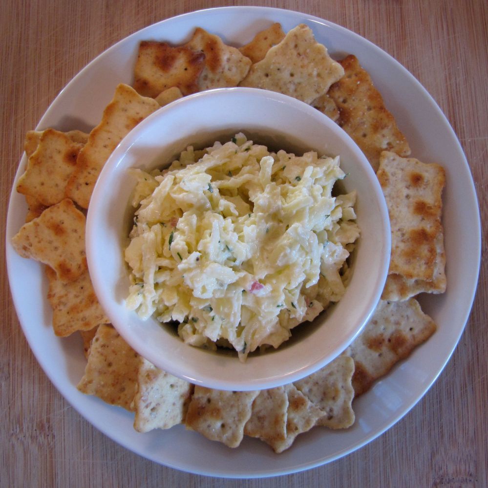 As promised in Tuesday’s post, a bonus Everyday Food Challenge recipe from issue #14, Jarlsberg Spread. Are you familiar this outstanding cheese? Exported from Norway, Jarlsberg cheese is known for its distinctive sweet and nutty taste. To make this delectable spread you’ll need about 2 cups of grated Jarlsberg, a little less than a cup of mayonnaise (I really enjoy the olive oil based mayos on the market right now), a tablespoon each of finely chopped red onion and parsley, salt and pepper to taste. Stir it all together and serve with the very best crackers you can find.