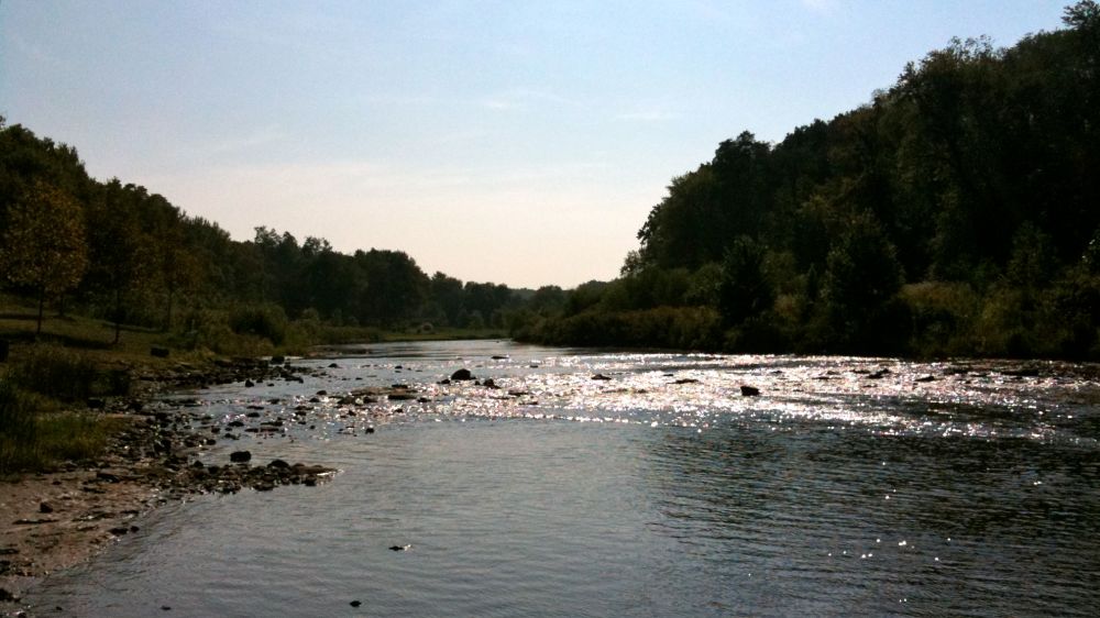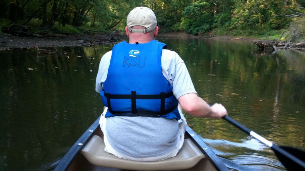 It’s a very special Five Senses Friday today. It all revolves around just one day, instead of the usual week. Today I was able to mark off another item on my 37 Things List, #33 canoe. I confessed to Greg this morning that the whole reason the list existed was to get to canoe. I hadn’t done it since High School. Just recently, Kent State University started a program called Crooked River Adventures. We canoed from Kent down the Cuyahoga River about 4.5 miles to Munroe Falls. The first half was shady and lovely. The second half was a bit more challenging. Evidently, the river is a bit low right now. We found ourselves getting out of the canoe and pushing it a bit in the very shallow areas.