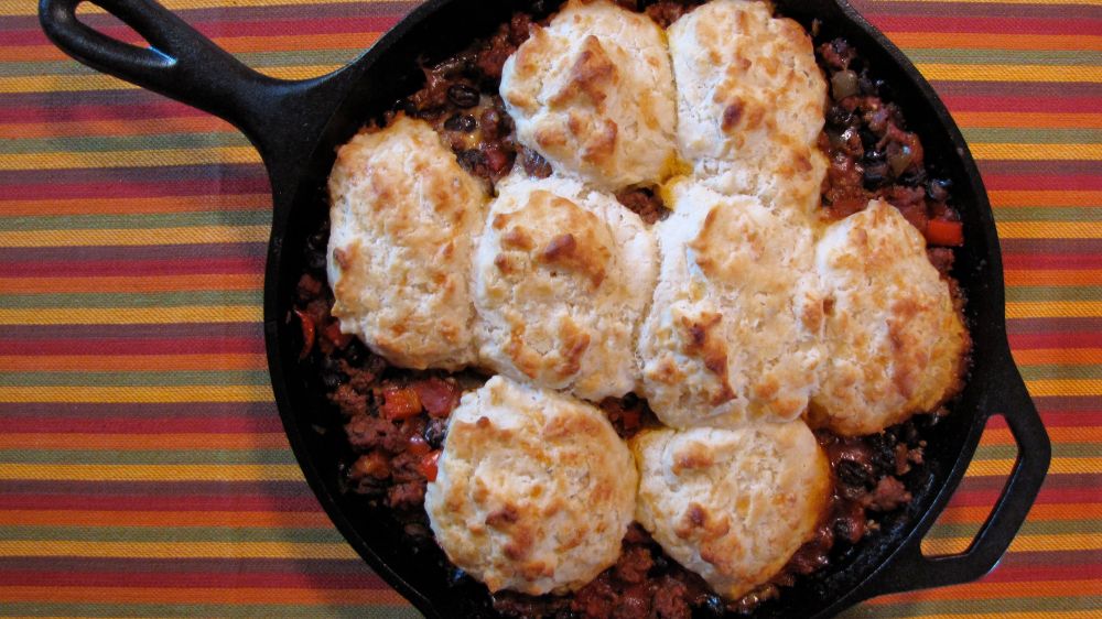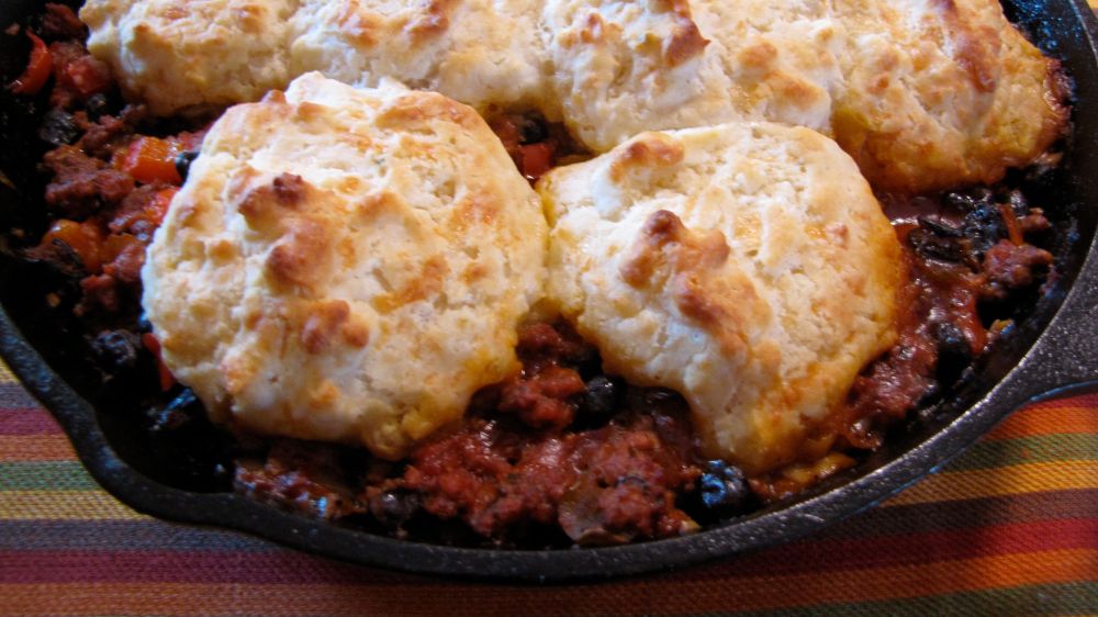 So you know how I announced that the Orecchiette with Sausage and Roasted Peppers was my favorite Everyday Food Magazine recipe? Well I think I found the close second place contender and another great fall recipe. You can sum up this recipe easily by describing it as chili with a cheesy biscuit topping.