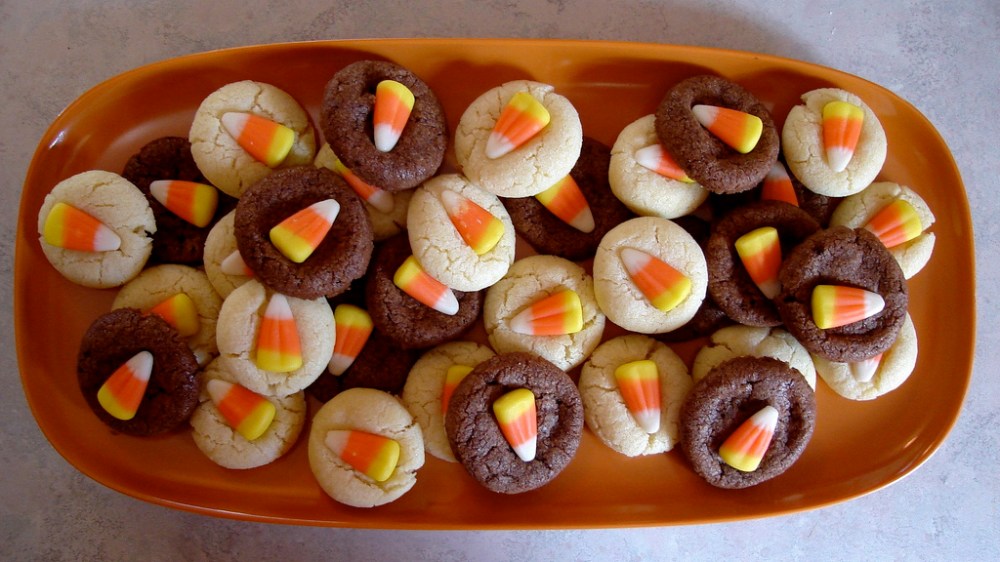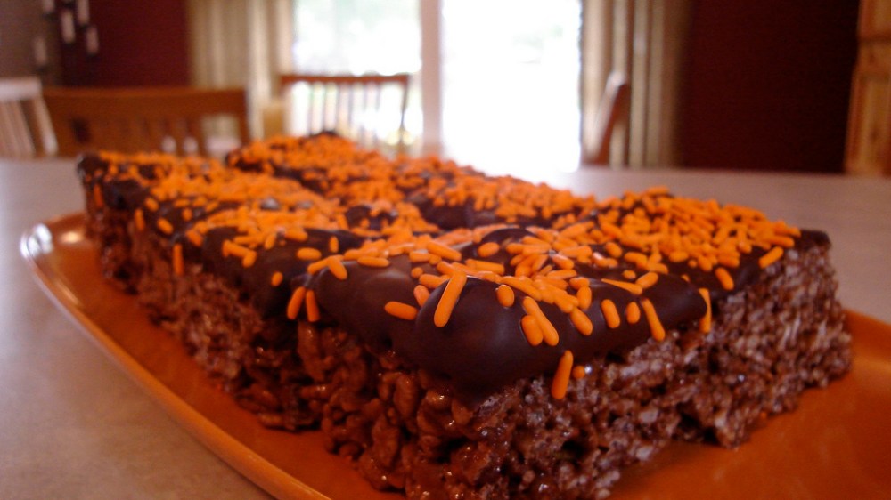 So, besides the piles and piles of candy, what else do I like about Halloween? Well, there’s the annual pumpkin carving I do with my nieces, the decorating, and, of course, the baking. I just love those little bite-sized sugar cookies topped with a single delectable candy corn. And those crispy chocolate marshmallow treats dipped in chocolate and topped with orange sprinkles—that’s certainly not a scary treat.