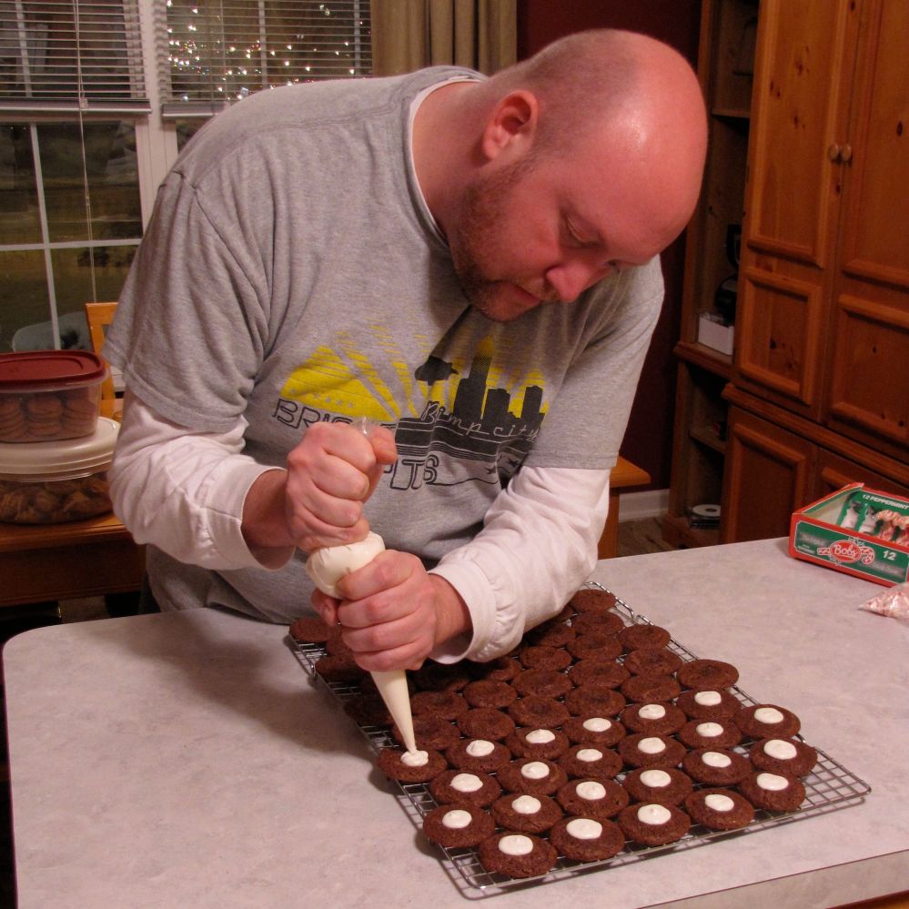 They were pretty easy to make. And the peppermint marshmallow cream is amazing. Really it is.  I think next time I’m going to use the mexican hot-chocolate cookie recipe, add a little instant espresso to the batter, and omit the chili powder from the coating.  Then take two cookies and sandwich them around the peppermint marshmallow cream for a bit of a peppermint mocha inspired cookie. (This was actually Greg’s idea.) Who’s with me? What are you baking for the holidays?