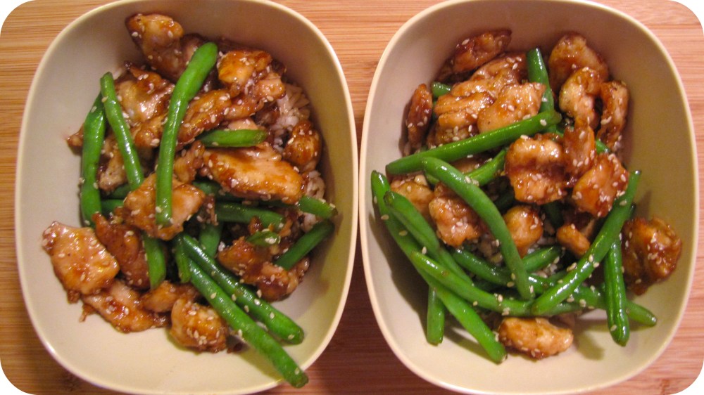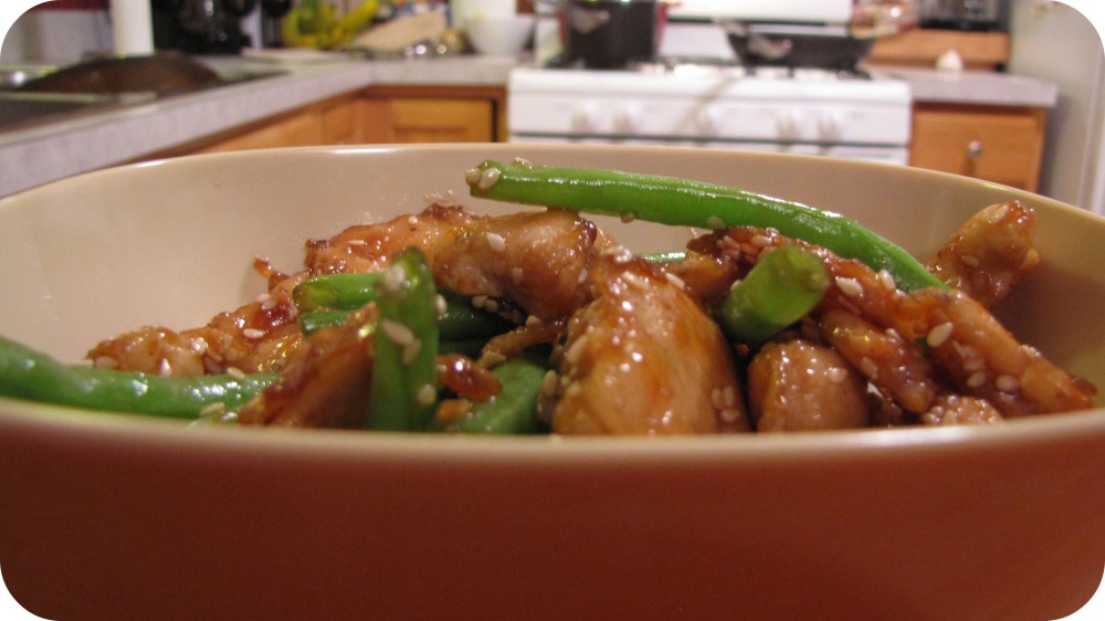 Confession time. I’ve made this recipe for Lighter Sesame Chicken four times in the last two weeks. It is insanely good. There’s something about the sweet and savory glaze that the honey and soy sauce create. The Everyday Food magazine recipe calls for broccoli as the added vegetable.  I’ve been using fresh greens and love the crispy crunch they add. I’m not the biggest fan of Chinese take-out, but this very simple homemade alternative pleases me to no end. And Greg’s not complained that it’s graced our dinner table so often. What’s your favorite homemade “take-out” dinner?