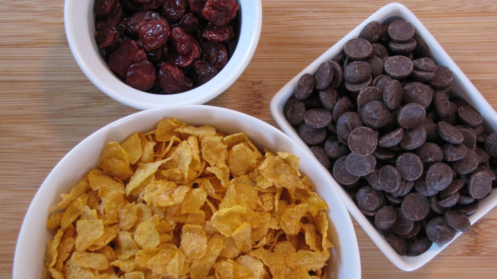 Three ingredients, fifteen minutes prep time, an amazingly great snack: the Chocolate-Cherry Cluster.