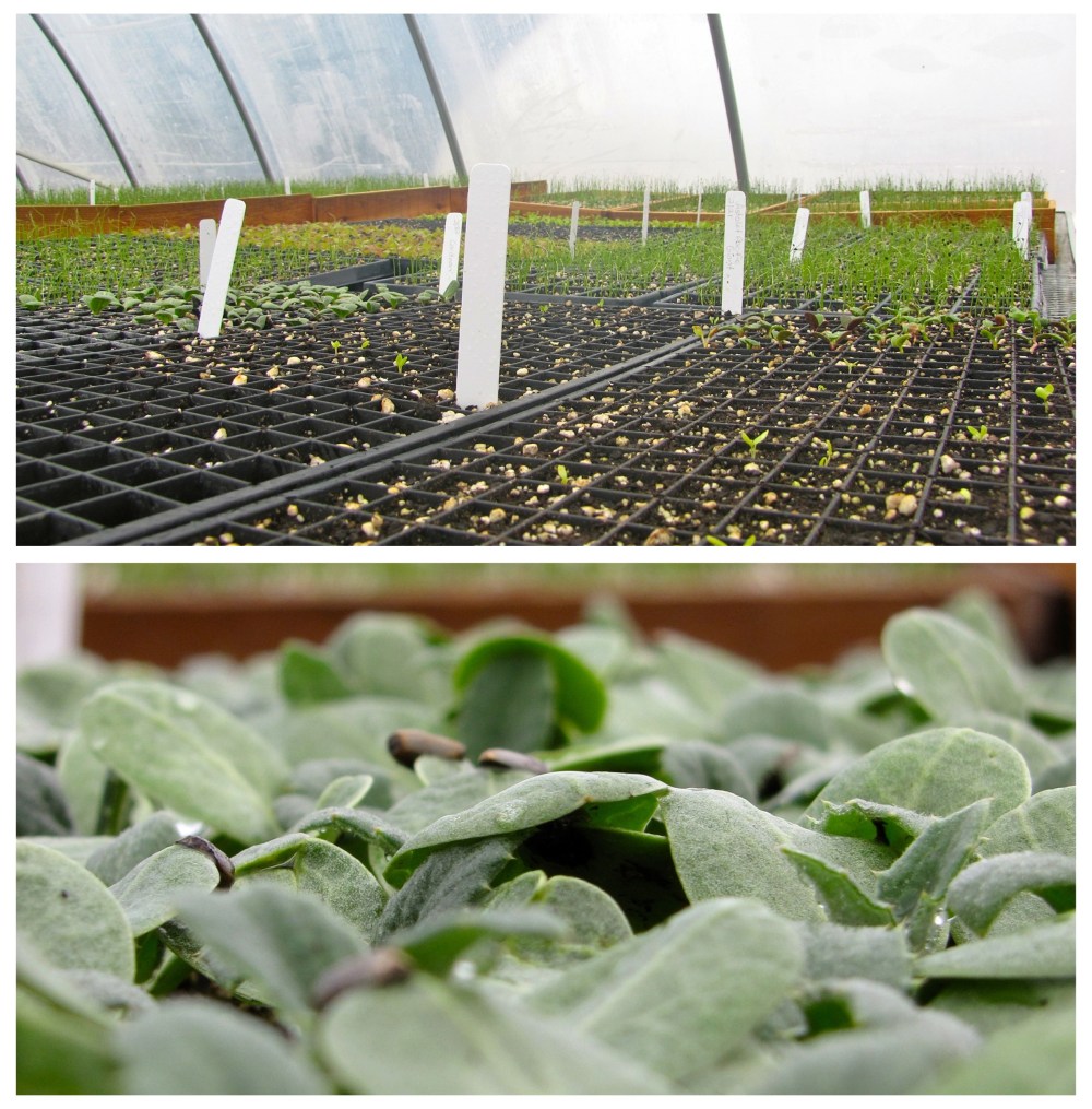 Late last week I had the opportunity to escape from the curse of this very long winter. I spent some time at the Crown Point Ecology Center in Bath, Ohio. Greg and I are CSA members this year, and I’m doing some volunteer work on the center’s marketing committee. I wanted to get some photographs of the progress that Tim and Whitney are making on getting the plants ready for this Spring’s organic plant sale. As I walked through the warm greenhouse, I was excited to see all of the green. Including the tiny 3-week old artichoke plants. There were lots of lettuce, onions and grasses sprouting. I counted several varieties of thyme including orange, German and summer. The beginnings of great rosemary plants were also peaking just above the potting soil. If you are in the Akron area in May, be sure to mark your calendars for the plant sale. The organic plant sale is May 14 & 15, 9:00-4:00PM (Sat) 11:00-3:00PM (Sun). Last year I purchased several herbs, tomato plants and peppers.
