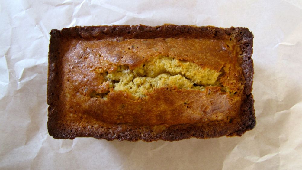 Transfer batter to pan and bake until a toothpick inserted into the center of the cake comes out with a few moist crumbs attached, 65 – 70 minutes. Let cool in pan on wire rack, 1 hour. Remove cake from pan and let cool completely on rack before slicing.
