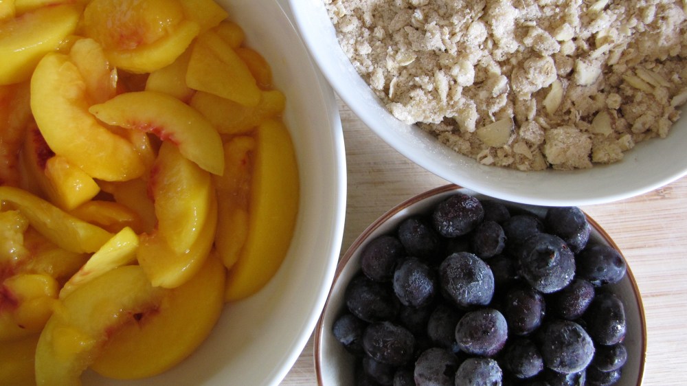 peach, blueberry and almond crisp