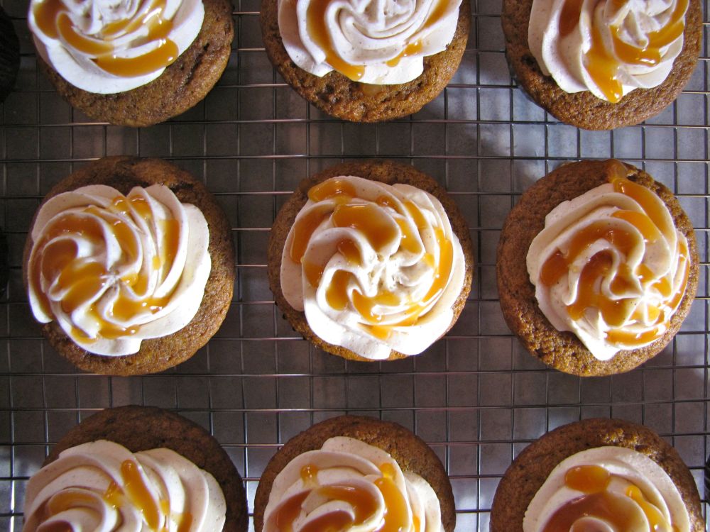 They look perfect and I think I could find several excuses to have one for breakfast. I like your frosting switch too. Perfect with the pumpkin cupcake.