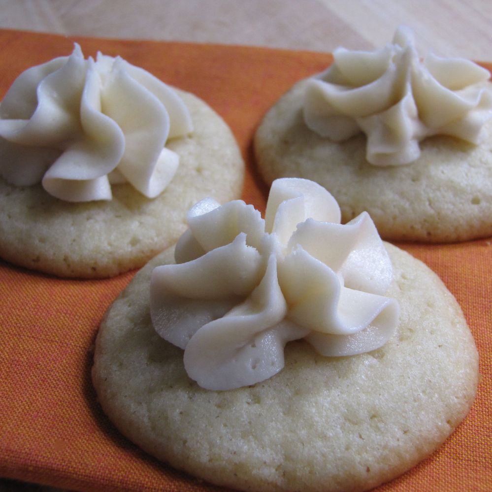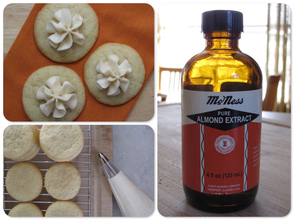 These cookies were really easy to make and gave me an excuse to use more of that wonderful bottle of almond extract. The recipe makes a lot of cookies, about 60. Unfortunately, the homemade frosting recipe didn’t make enough for all of the cookies. Perhaps, I was too generous. I mean it’s frosting, folks! No worries, you can either make more frosting, or eat them frosting-less. They’re still great, just on their own.
