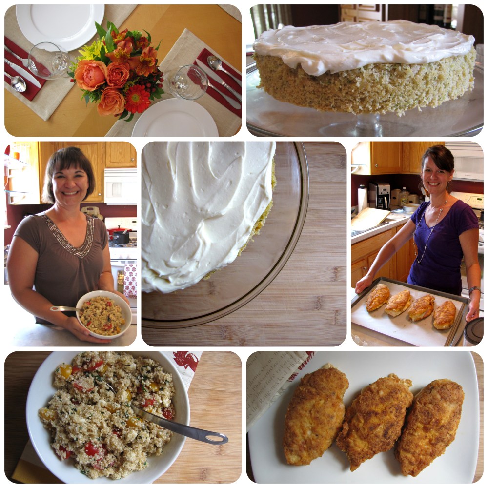 Jennifer and her family eat a gluten-free diet. So that’s the theme we decided for our lunch. Stephanie surprised me with a recipe for Backyard Quinoa (Queen) Salad. Jennifer made her famous Chicken Cordon Bleu. I baked a Zucchini-Almond Cake from the latest issue of Everyday Food Magazine. I was pleasantly surprised how much I enjoyed this gluten-free lunch. It was full of flavor, simple and I didn’t feel like I was missing a thing. Best of all, I got to share it with two very special people. It was wonderful to catch up and share a delectable meal.