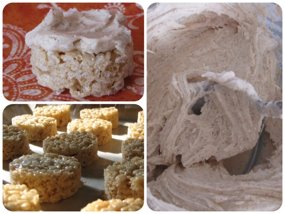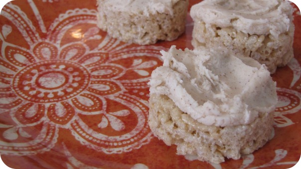 So incredibly genius to add cinnamon to rice krispie treats! (The frosting sounds very tasty too, although I bet they hardly need it.)