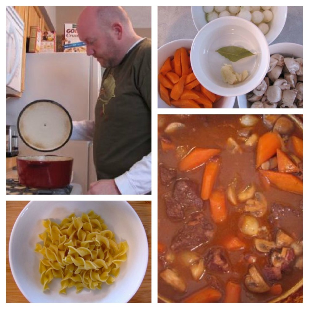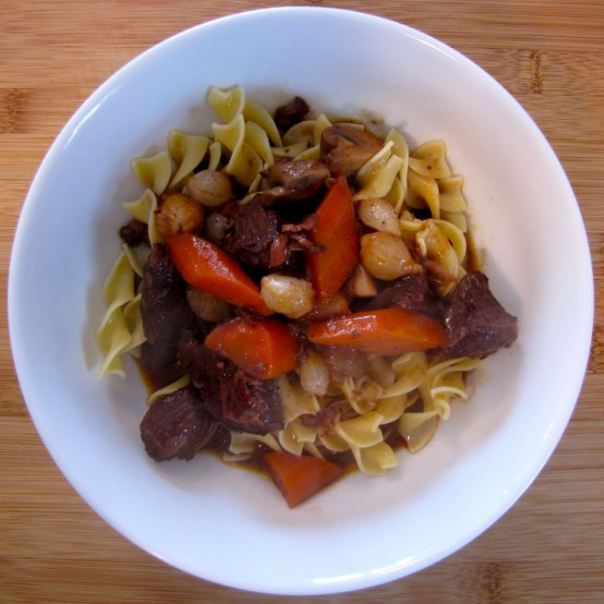 I’ve wanted to make this since seeing Julie & Julia. A pretty easy version was recently featured on the PBS series Everyday Food and then in the most recent edition of Everyday Food’s magazine. If you don’t subscribe, you need to. You really do. Go. Subscribe now. There’s no time to waste. It’s seriously one of the best mail-days of the month when this little digest of recipes from Martha arrives in the mailbox. I rush inside the house, settle down at the kitchen table and plan my attack on churning out the easy and tasty recipes featured inside. This one was a winner and the perfect Sunday/Valentine’s Day meal to share with that special someone you adore. So what if the prep for the meal took nearly an hour. The additional three hours it braised in the oven made for one of the most tender and flavorful beef recipes I’ve ever had. Here’s the recipe.