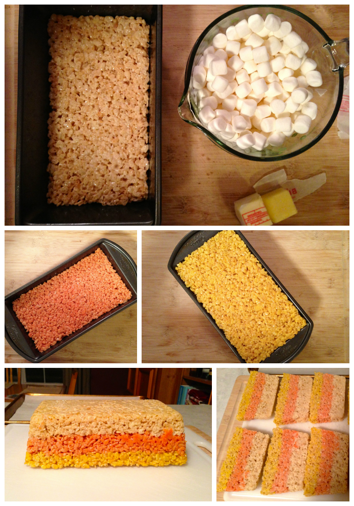Candy Corn Krispie Treats adapted from Everyday Food, October 2012.